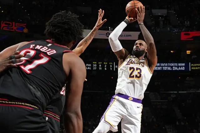 重返巅峰,詹姆斯带领湖人终结对76人7连败,里夫斯和恩比德对冲